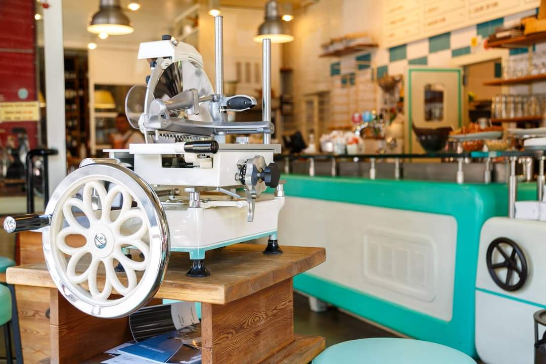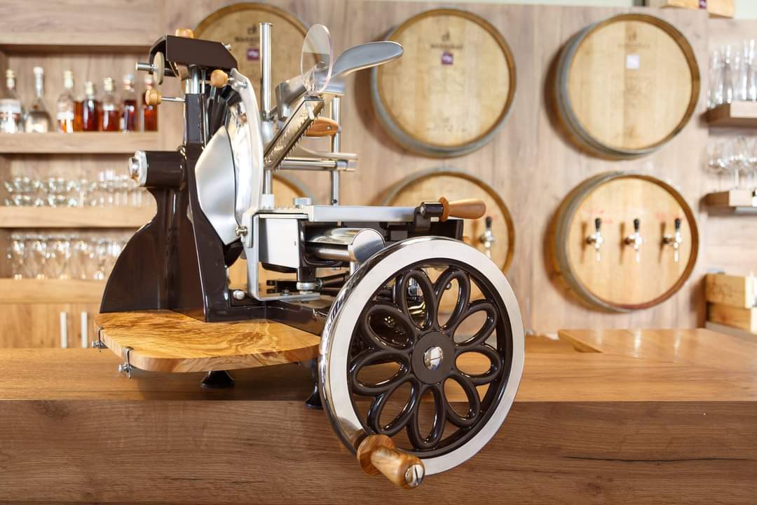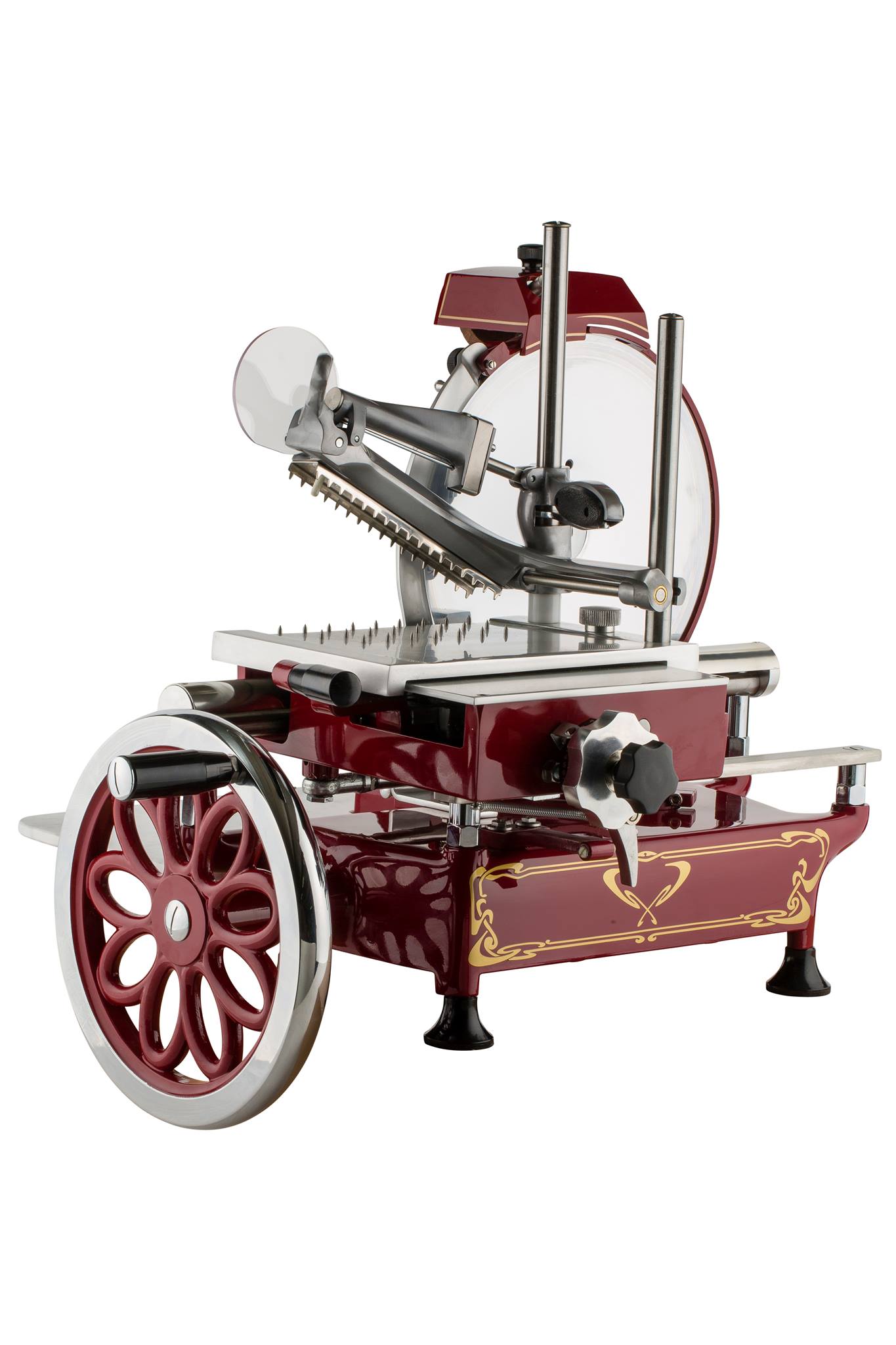 Volano ζαμπονομηχανη ρετρό κάθετης κοπής αλουμινίου με εξαρτήματα από χάλυβα και λεπίδες 250, 300, 350 και 370 mm.Με βάση στήριξης από χυτοσίδηρο που ταιριάζει με το κάθε μοντέλο με τέλειο φινίρισμα .